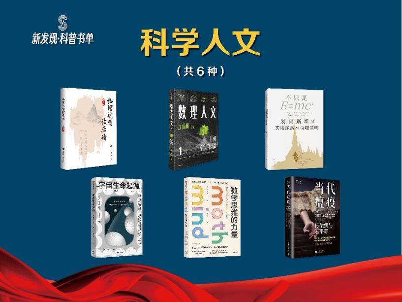 “新发现·科普书单”分为“科学人文”“科学生活”“科学少年”3个子书单。入选本期“科学人文”子书单的图书共6种,包括中国科学院物理研究所研究员曹则贤运用现代物理学解读唐诗名篇的《物理视角读唐诗》(上海科技教育出版社)、菲尔兹奖得主丘成桐主编的以培养中国孩子数理人文素养为宗旨的《数理人文(第一辑)》(中信出版集团),以及《当代瘟疫:传染病与不平等》《不只是E=mc2——爱因斯坦的实用探索和奇趣发明》《宇宙生命起源》《数学思维的力量》。
