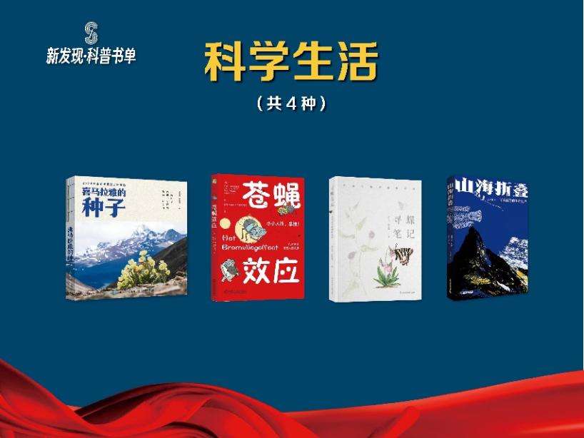 入选本期“科学生活”子书单的图书共4种,包括心理学科普读物《苍蝇效应》(机械工业出版社)、揭秘青藏高原野生植物生存智慧的《喜马拉雅的种子》(人民邮电出版社),以及《山海折叠》《寻蝶笔记——发现身边的蝴蝶家园》。